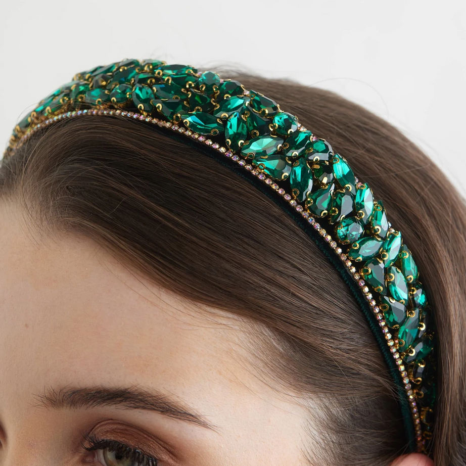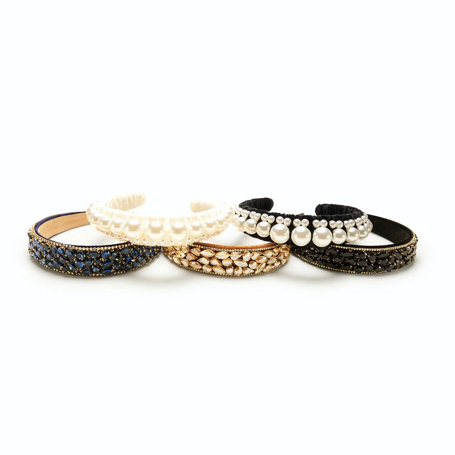 The Florence headband is a true masterpiece, boasting a classic design that is completely embellished to create a stunning statement piece. Every inch of this accessory is adorned with intricate details, making it a work of art that captures attention and admiration. The classic design adds a touch of timeless sophistication, making the Florence headband the perfect choice for those who appreciate refined elegance. Make a statement in your 'fit with this striking accessory, a blend of classic charm and bold embellishments, ensuring you stand out with style and grace.
