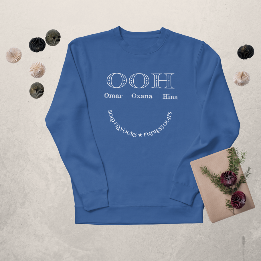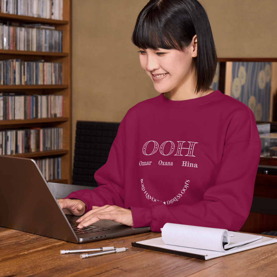 Elevate your casual wardrobe with the OOH Signature Sweatshirt, designed for effortless style and all-day comfort. Made from a luxurious cotton-polyester blend, it offers a buttery-soft feel, breathability, and lasting durability. The sleek, full-sleeve, collarless design ensures a modern, versatile fit, perfect for any occasion. Available in Royal Maroon, Navy Blue, and Army Green, each piece features the OOH restaurant’s signature branding, making it a must-have for those who appreciate fine taste—both in fashion and cuisine.